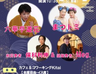 しばたの未来寄席~10月の会 六華亭遊花・まつトミ・和笛奏者保科利伸&鍵盤奏者Meg.出演~ 予約受付中
