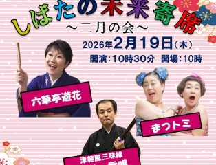 2026年1月26日しばたの未来寄席~2月の会 六華亭遊花・まつトミ・津軽風三味線 岡崎秀明出演~ 予約受付中