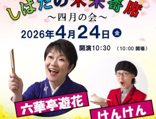 2026年3月19日しばたの未来寄席~4月の会 六華亭遊花・けんけん出演~ 予約受付中