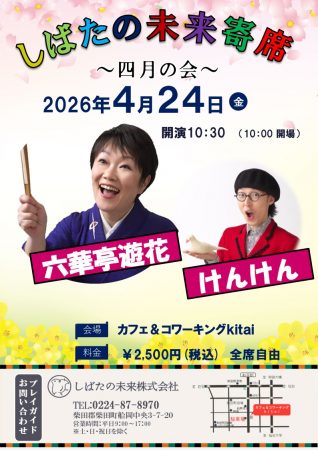 しばたの未来寄席~4月の会 六華亭遊花・けんけん出演~ 予約受付中